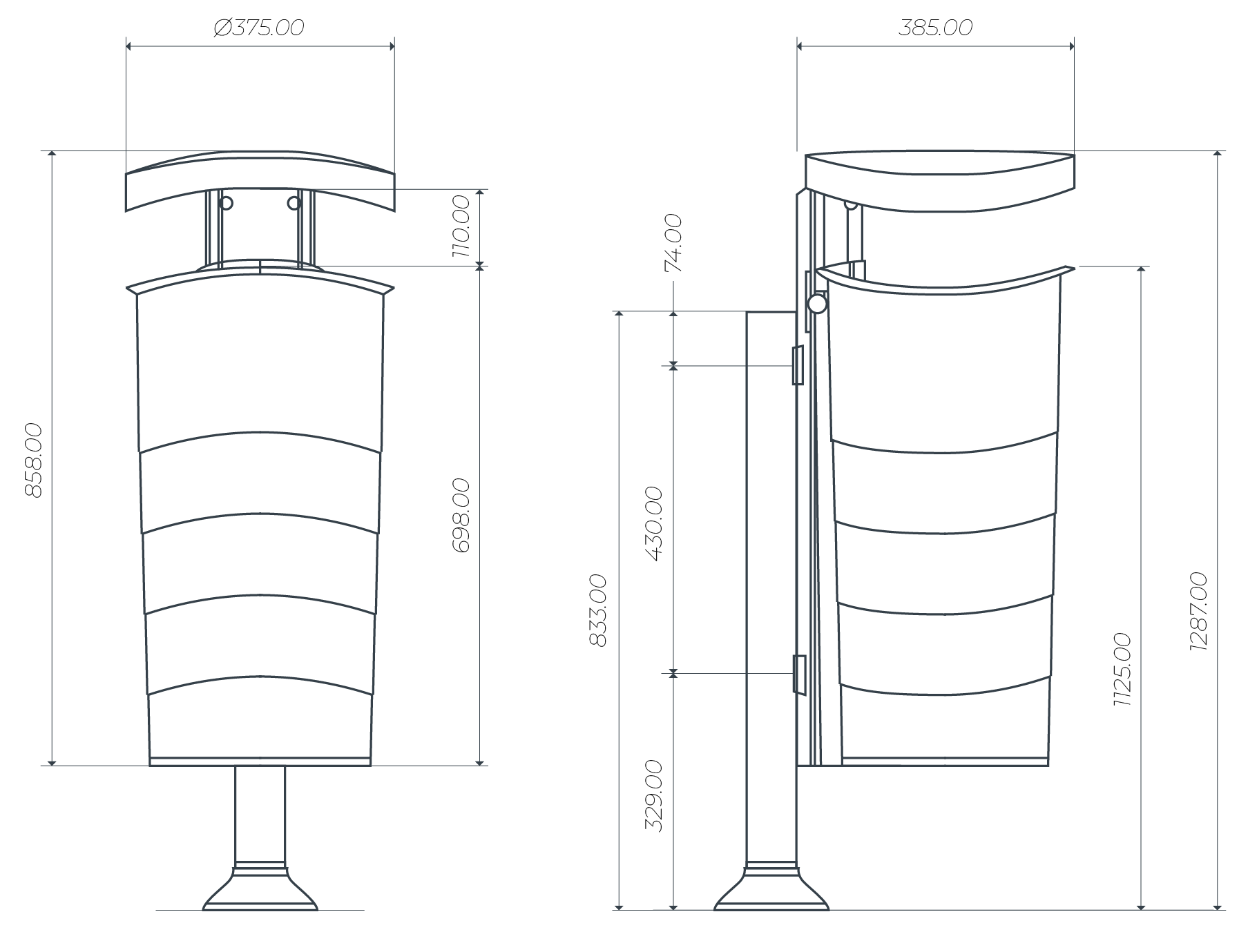 Fabricat en plàstic tècnic que serveix per ancorar la paperera a un pal fix.