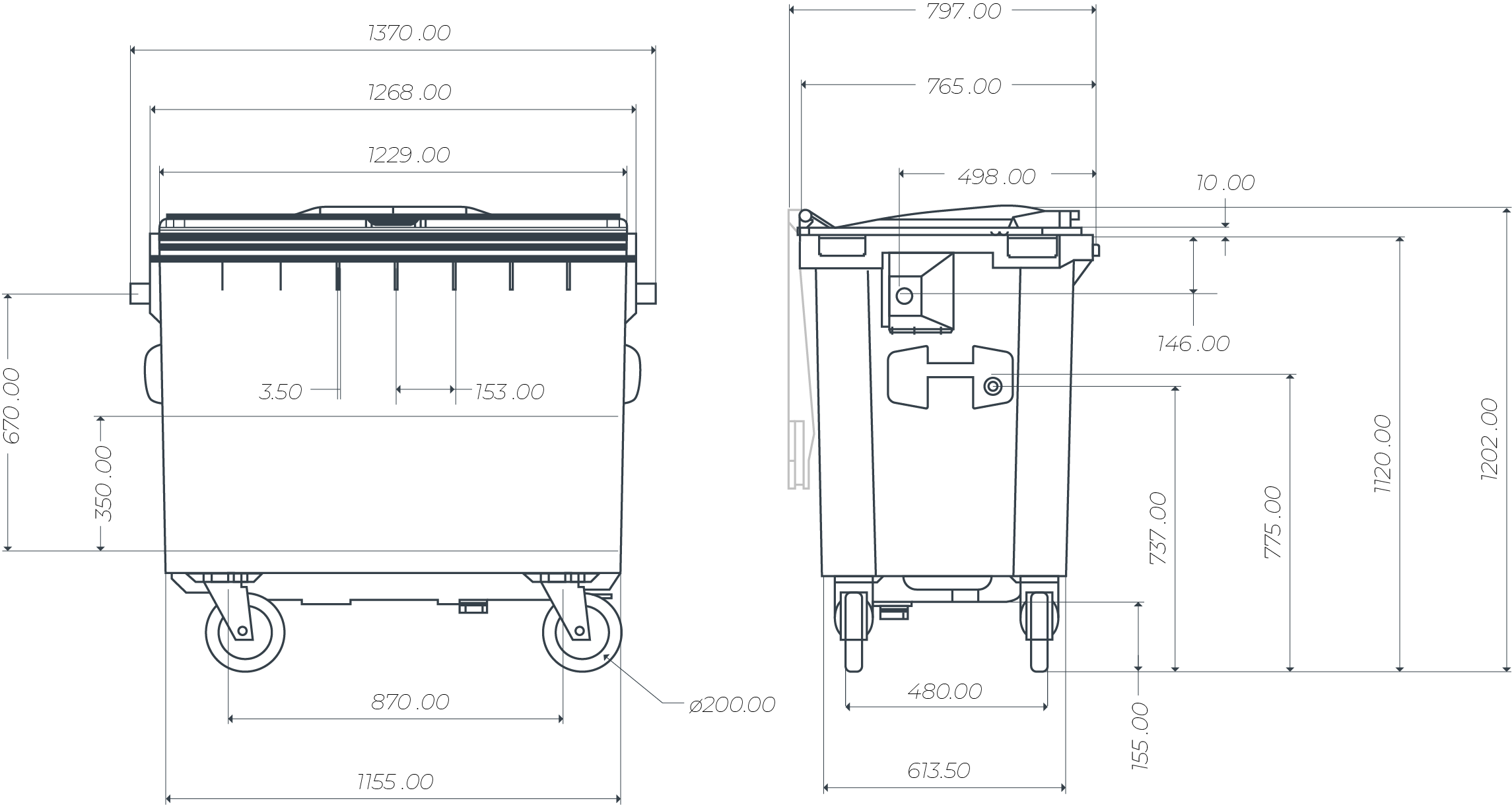 Wheel braking function that blocks the container from moving involuntarily.